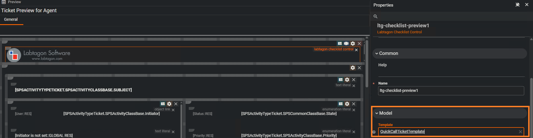 An der Ticket Preview den Layout Designer öffnen und das Labtagon Checklist Control in die Ansicht ziehen.