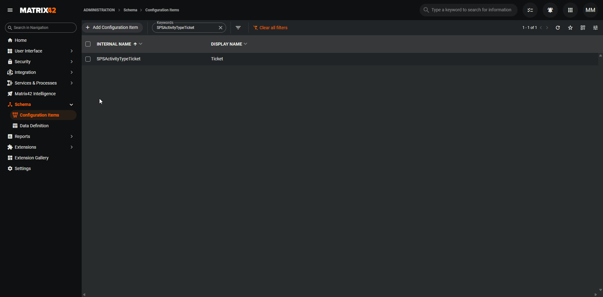 Navigeren zu Administration > Schema > Configuration Items