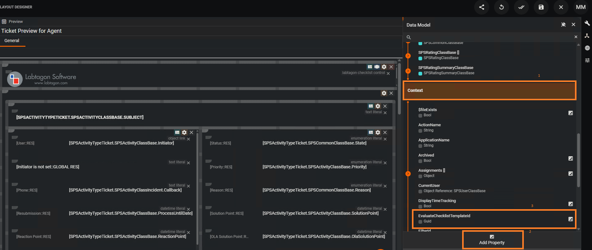 Öffne den Layout Designer und ziehe aus der Control-Suche das Labtagon Checklist Control in das Layout.