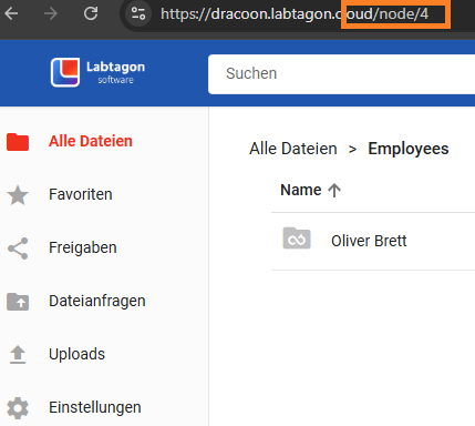 Lies die Ids direkt aus der URL in der Dracoon Oberfläche ab. Sieh dir dazu die folgenden Beispiele an: