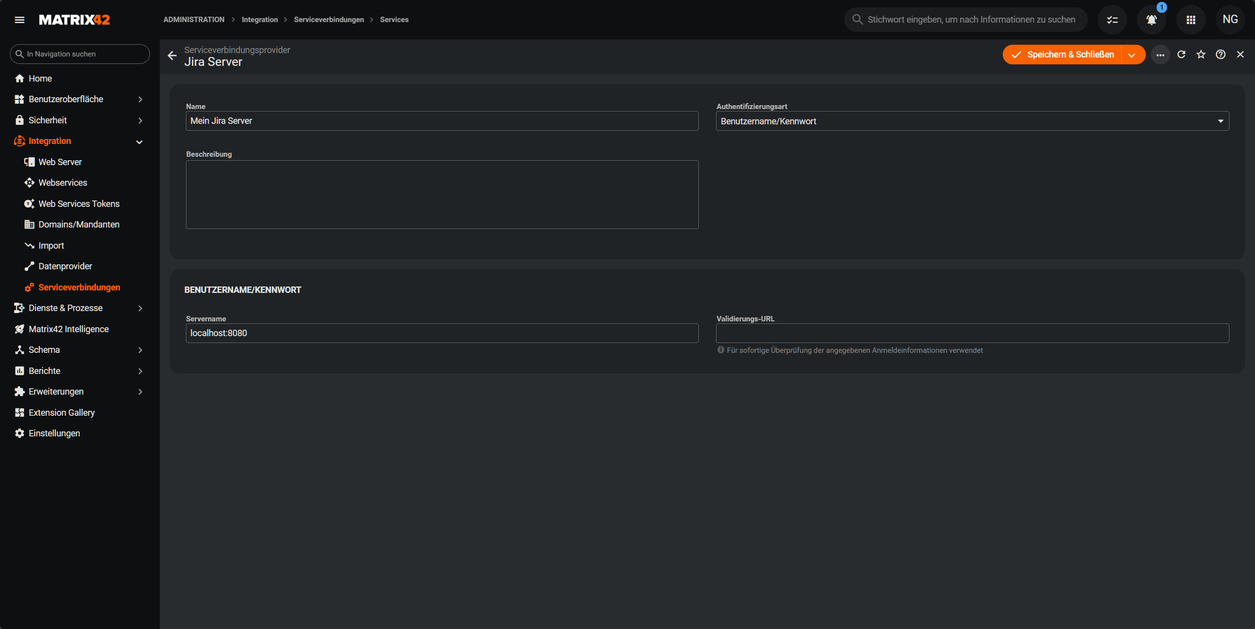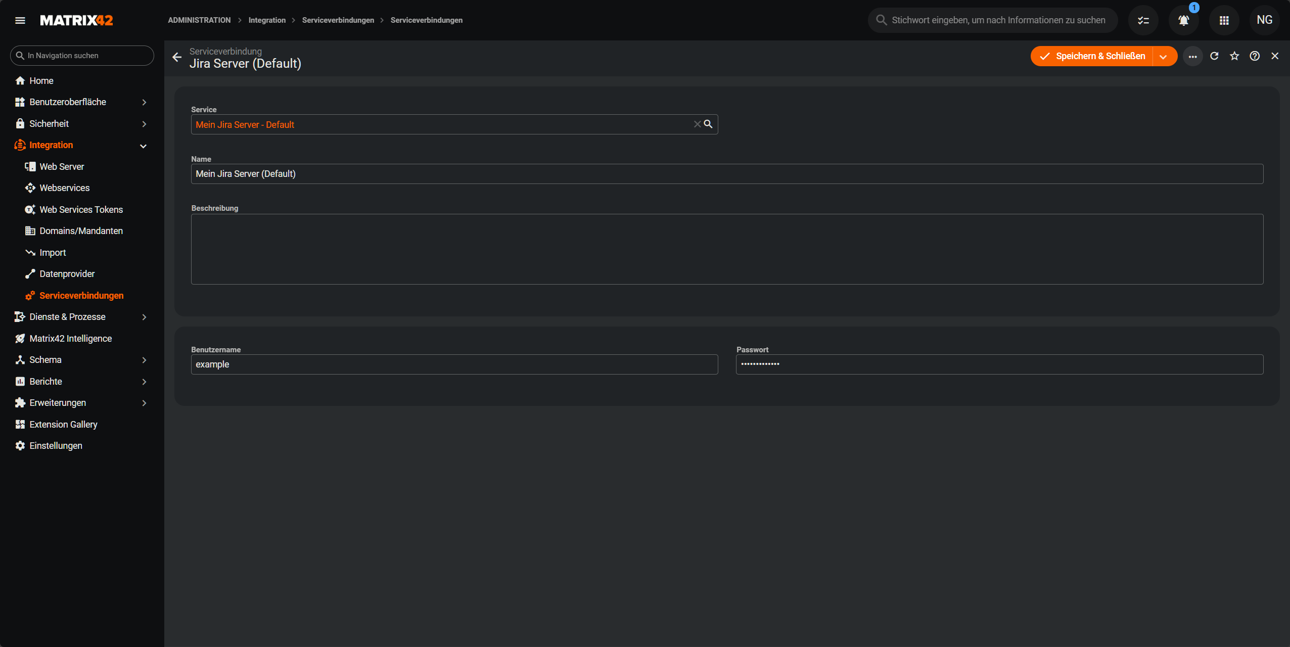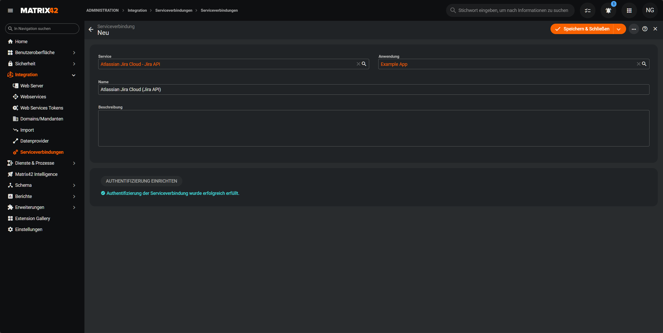 Administration > Integration > Serviceverbindungen > Serviceverbindungenund erstelle eine neue Serviceverbindung.
