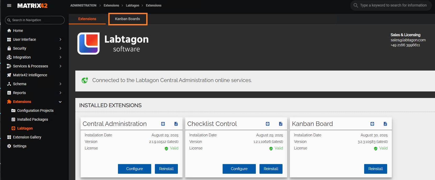 Navigiere zu Administration > Erweiterungen > Labtagon