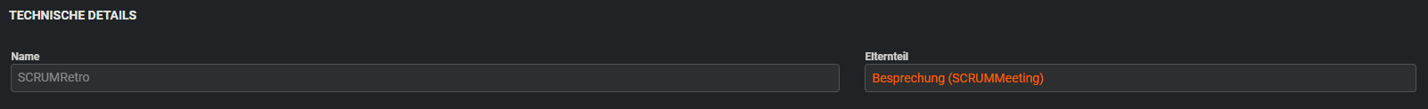 Der Elternteil muss zwingend angegeben werden, da die Schnellansicht und der Dialog von der übergeordneten Aufgabentyp-Definition kopiert wird. Außerdem wird die Datendefinition des Elternteils an das Konfigurationsobjekt der neu erstellten Datendefinition angehängt.