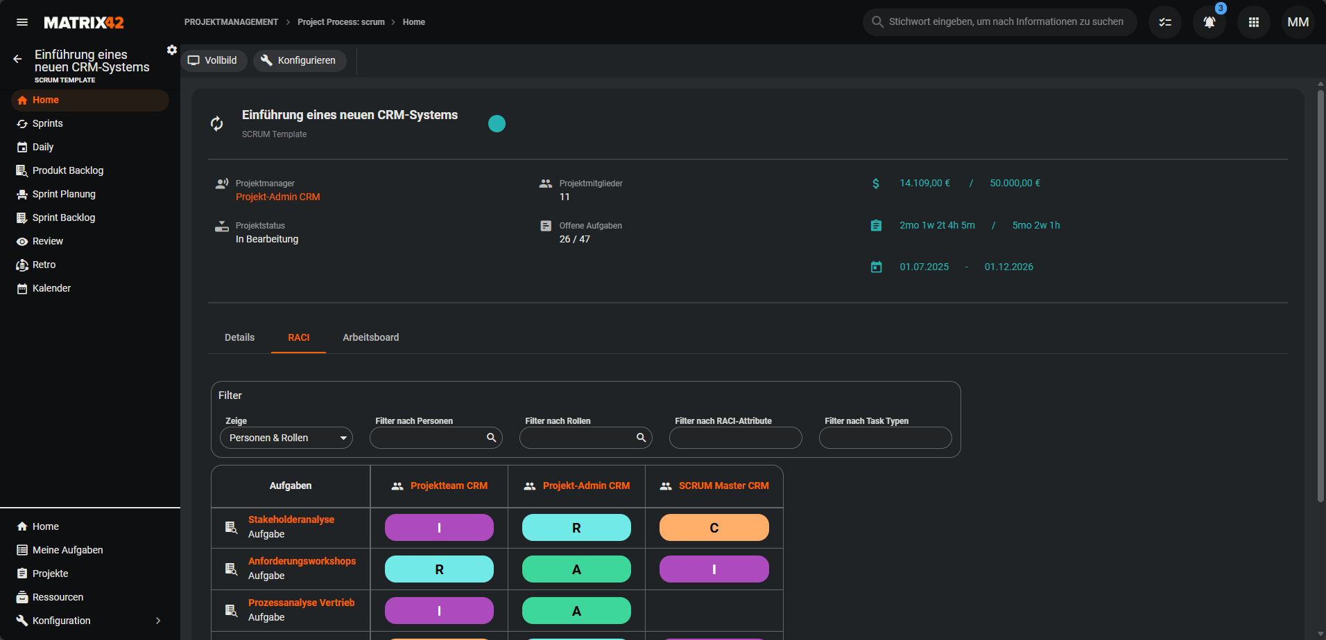 Weitere Informationen zum RACI-Modell und zur Konfiguration findest du in der entsprechenden Dokumentation unter RACI.